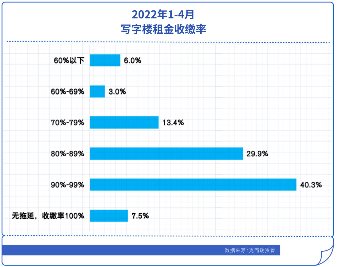 從租金收繳率來看,僅7.5%的項目100%收繳無拖延,70.2%的寫字樓租金收繳率出現下跌。