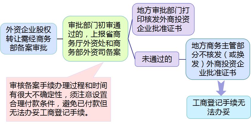 在收購(gòu)?fù)赓Y企業(yè)、國(guó)有企業(yè)的股權(quán)時(shí)要特別關(guān)注股權(quán)轉(zhuǎn)讓手續(xù)的辦理程序,避免因辦理不了股權(quán)轉(zhuǎn)讓手續(xù)而導(dǎo)致收購(gòu)方投入大量資金卻在法律上對(duì)目標(biāo)公司沒(méi)有任何權(quán)利。
