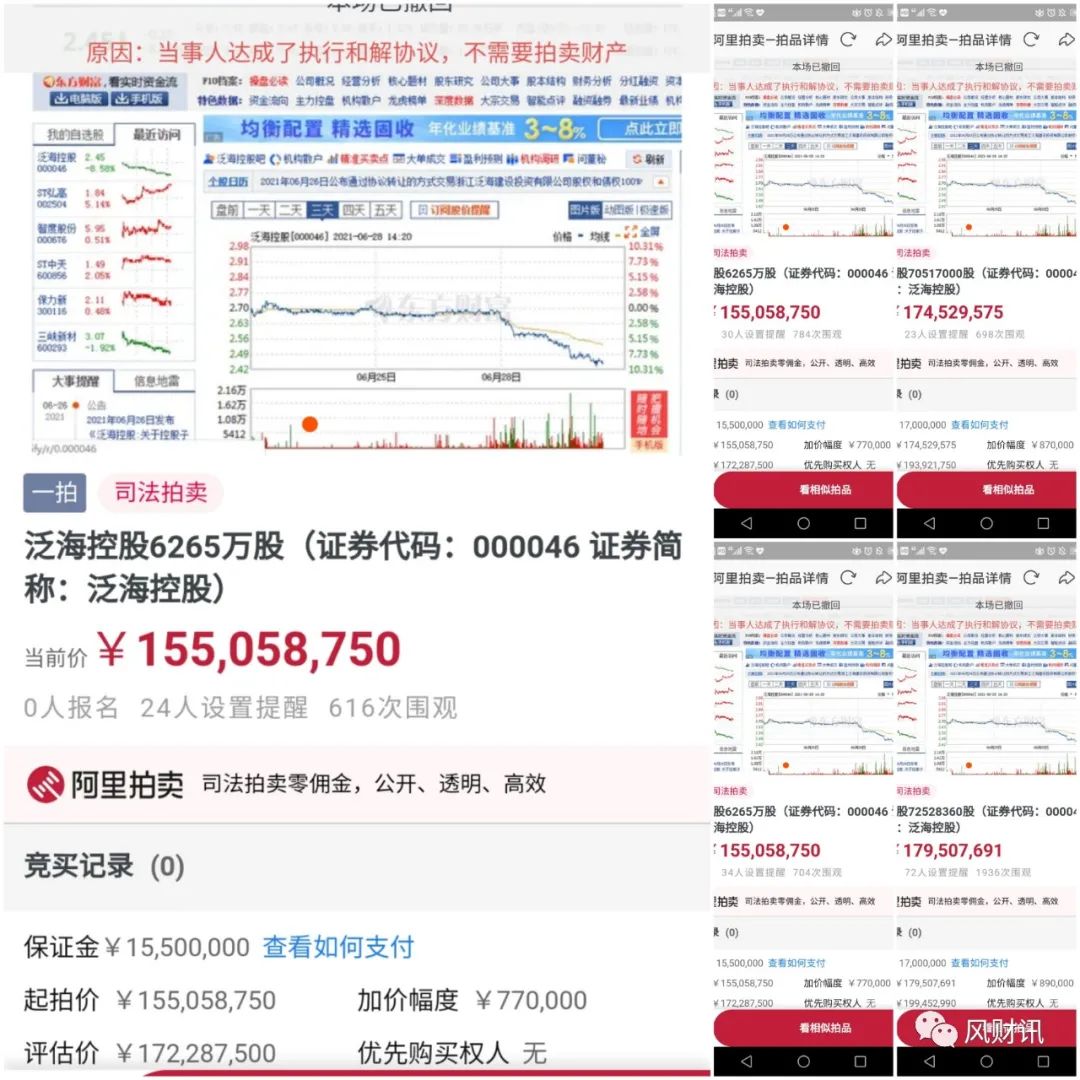 風(fēng)財(cái)訊發(fā)現(xiàn),在6月的一拍中,張宇就曾參與泛海控股股權(quán)拍賣,且有所得。