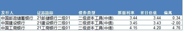 郵儲、建行和工行新發的二級資本債繼續偏離估值放量暴跌,成交量領跑信用債市場。其中21郵儲銀行二級01在今天的交易筆數甚至超過了同日非活躍10年期國開債了,原來信用債也能摸到利率債的流動性門檻。