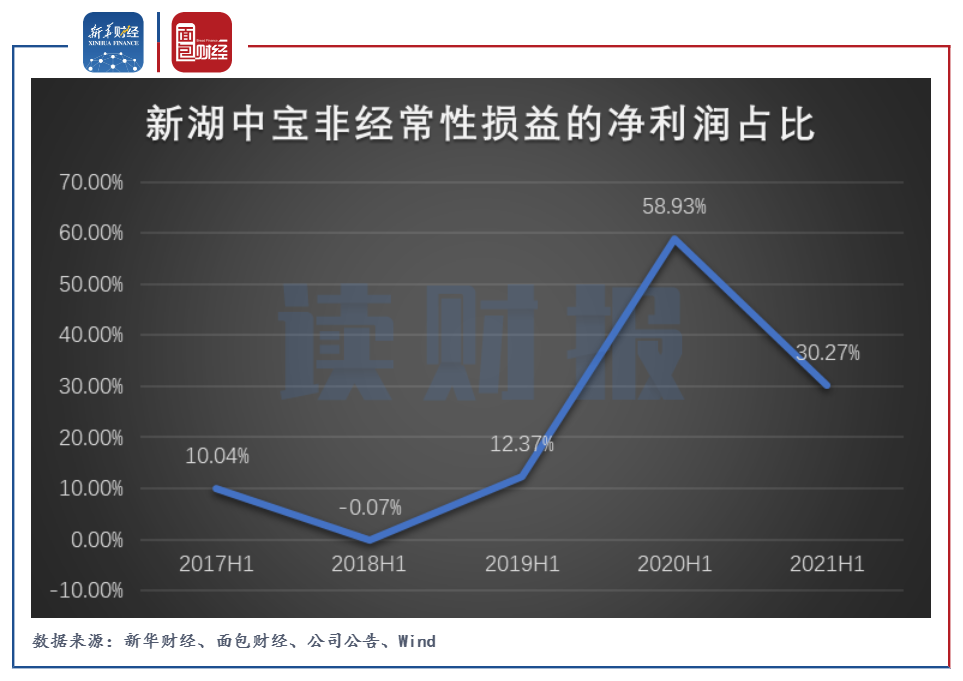 圖3:2017H1-2021H1新湖中寶非經常性損益的凈利潤占比