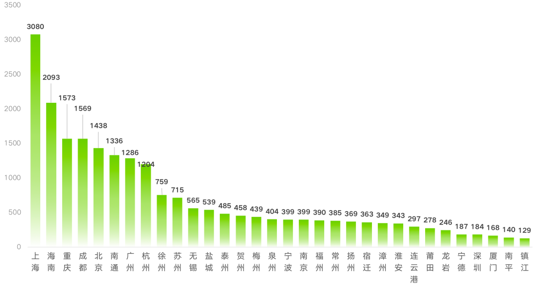 圖:國(guó)內(nèi)部分城市百歲老人人數(shù)