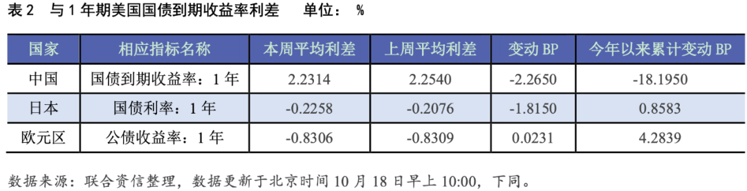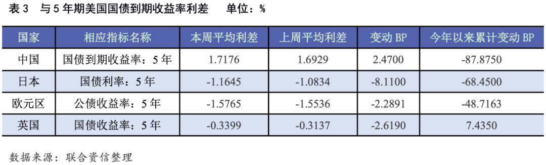 各期美債收益率均收漲,各主要經(jīng)濟(jì)體國(guó)債與美債收益率利差走勢(shì)不一