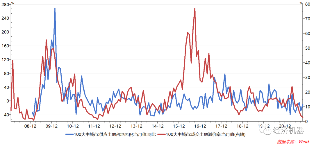 土地市場(chǎng)方面,百城供地面積繼續(xù)保持同比負(fù)增局面,土地溢價(jià)率進(jìn)一步回落(圖8)。在房地產(chǎn)信用環(huán)境持續(xù)惡化情況下,土地市場(chǎng)是最先感受到緊縮壓力的環(huán)節(jié)。在信用條件無實(shí)質(zhì)性改善情況下,土地市場(chǎng)短期不容樂觀,未來或?qū)毫飨虻胤截?cái)政。