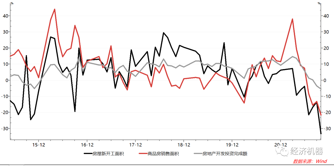 物量方面,房地產(chǎn)新開工和商品房銷量當(dāng)月同比去年分別下降33%和21.6%,房地產(chǎn)投資額當(dāng)月同比下降5.4%,降幅均明顯擴(kuò)大(圖7)。