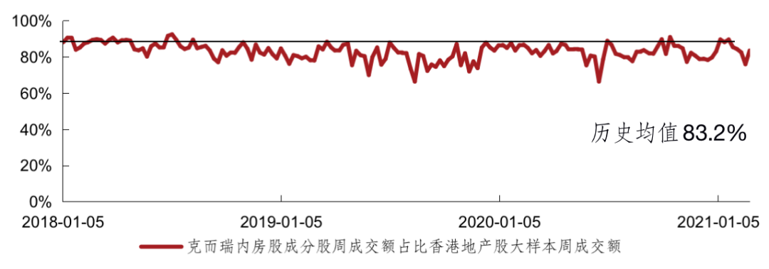 克而瑞內房股領先指數周成交額占比較上月有所回落