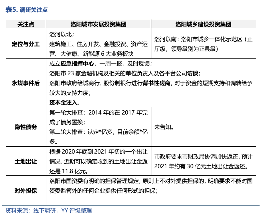本次調研了洛陽的兩大市級平臺:洛陽城市發展投資集團和洛陽城鄉建設投資集團。兩家平臺資質相對較好,市場認可程度尚可。