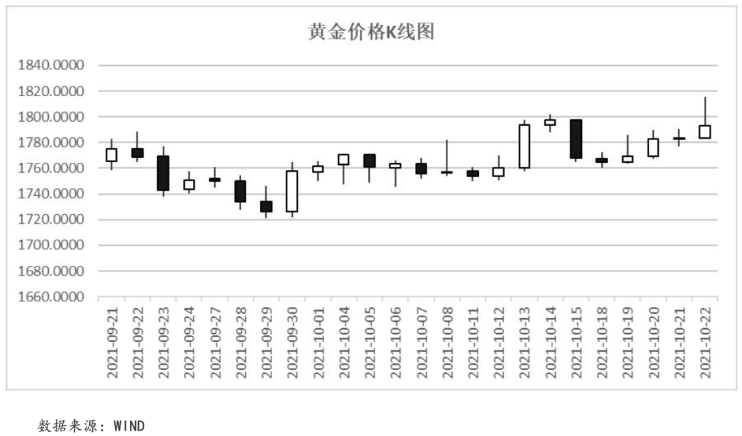本周,美國“褐皮書”的公布顯示出,美國經濟增速有所放緩的同時,通脹問題日益嚴峻。供應鏈的中斷、原材料價格上漲、能源價格上漲和勞動力的恢復緩慢都讓人們意識到這些共同助推高通脹的因素在短期內并不能有所改善。高通脹的持續(xù)拉升了市場避險情緒,黃金作為抗通脹的主要避險工具,因此金價走高。截至本周五,COMEX黃金價格收于1,793.10美元/盎司,周內累計收漲1.45%,連續(xù)第二周上漲。