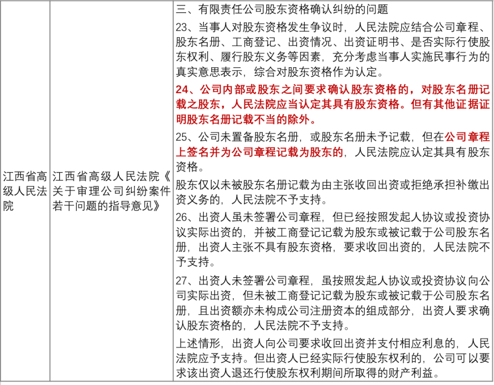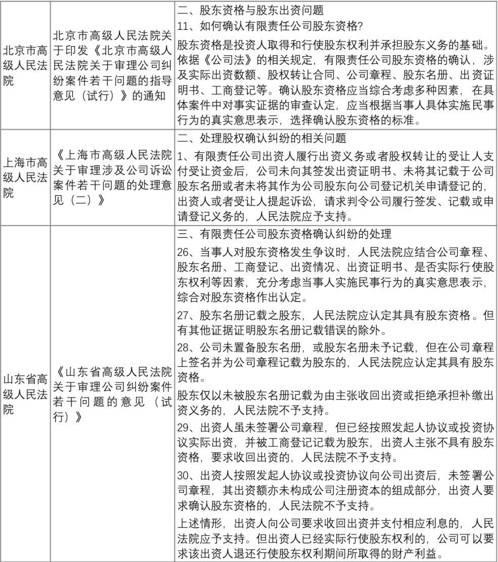 附錄:部分省市高院關于股東資格確認的相關意見