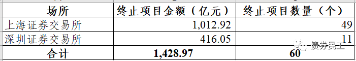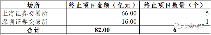 分交易所情況來看,上海證券交易所終止金額為66億元,占比為80.49%;深圳證券交易所終止金額為16億元,占比為19.51%。