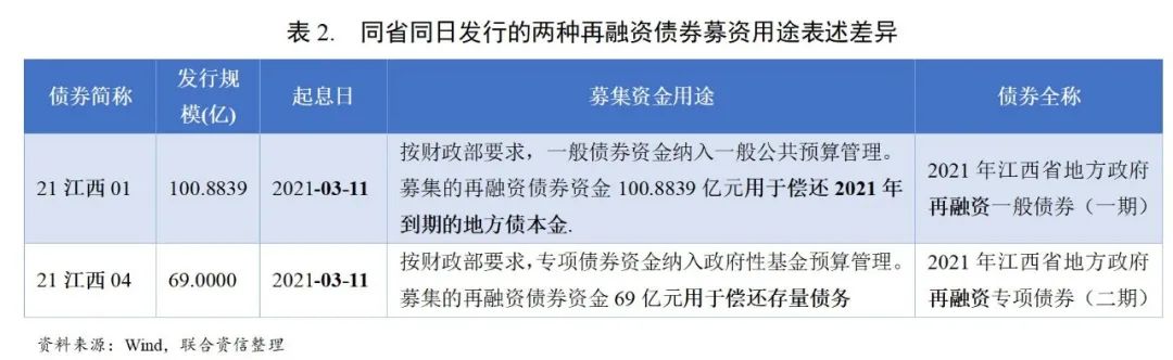 之所以采用再融資債券助力償還地方政府隱性債務(wù),或主要由于融資債券用途具備靈活調(diào)整的可能性。在當(dāng)前的地方政府債券制度框架下,新增債券及置換債券用于化解現(xiàn)期債務(wù)均面臨一定操作上的約束。新增債券方面,新增債券是“新增”的地方政府債務(wù),且由于新增一般債券受到預(yù)算赤字的約束,每年新增規(guī)模很小,如2021年我國預(yù)算安排新增地方政府債務(wù)限額4.47萬億元,其中一般債務(wù)限額僅0.82萬億元,專項(xiàng)債務(wù)限額3.65萬億元,新增專項(xiàng)債券規(guī)模雖然較多但其募集資金需受限用于新開工項(xiàng)目。置換債券是用于償還清理甄別認(rèn)定的截至2014年末全部非政府債券形式存量政府債務(wù)。因此,新增債券及置換債券均面臨一定操作上的約束。而再融資債券主要強(qiáng)調(diào)債務(wù)滾續(xù)的作用,募集資金用途具備一定靈活調(diào)整的可能性。
