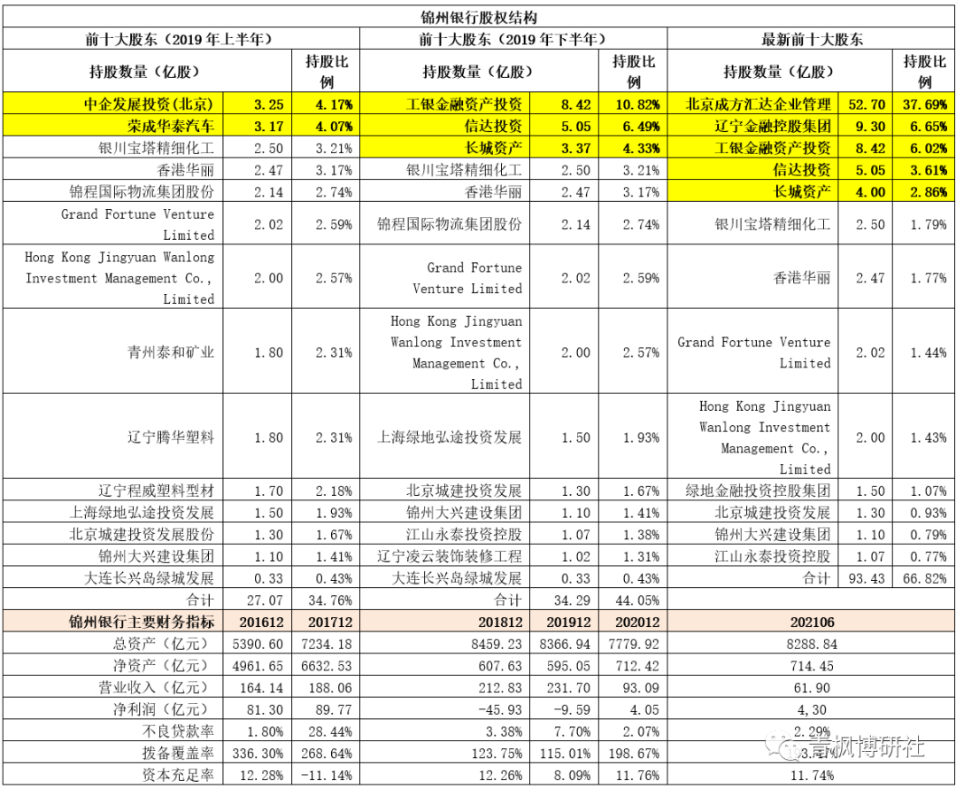 1、和包商銀行另起爐灶不同的是,錦州銀行則是通過債務(wù)重組來完成化險改革。2019年,錦州銀行因年報延遲披露等原因而暴露風(fēng)險,在監(jiān)管部門的指導(dǎo)下進行改革重組,引入工銀投資、信達投資、長城資產(chǎn)等戰(zhàn)略投資者(持有3.25億股的中企發(fā)展投資(北京)與持有3.17億股的榮成華泰汽車前兩大股東退出),并轉(zhuǎn)讓部分內(nèi)資股、剝離風(fēng)險資產(chǎn)、實施增資擴股。