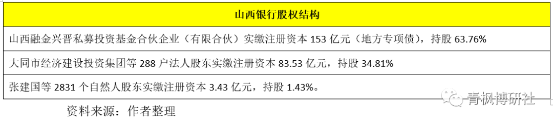 2、山西銀行的注冊資本達到239.96億(山西發(fā)行的153億元地方專項債便是為了注資山西銀行),原晉商銀行副行長高計亮任山西銀行董事長。