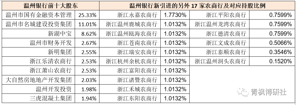 (八)溫州銀行:19家浙江本土農(nóng)商行入股,新湖系由大股東退居至第三