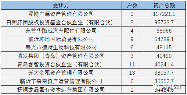 另外需要補(bǔ)充說(shuō)明的是:本次統(tǒng)計(jì)山東省2019年度成交公告共計(jì)2394戶(hù),其中債權(quán)金額未披露的有418戶(hù)。未披露金額的債權(quán)成交記錄戶(hù)數(shù)明細(xì)如下:
