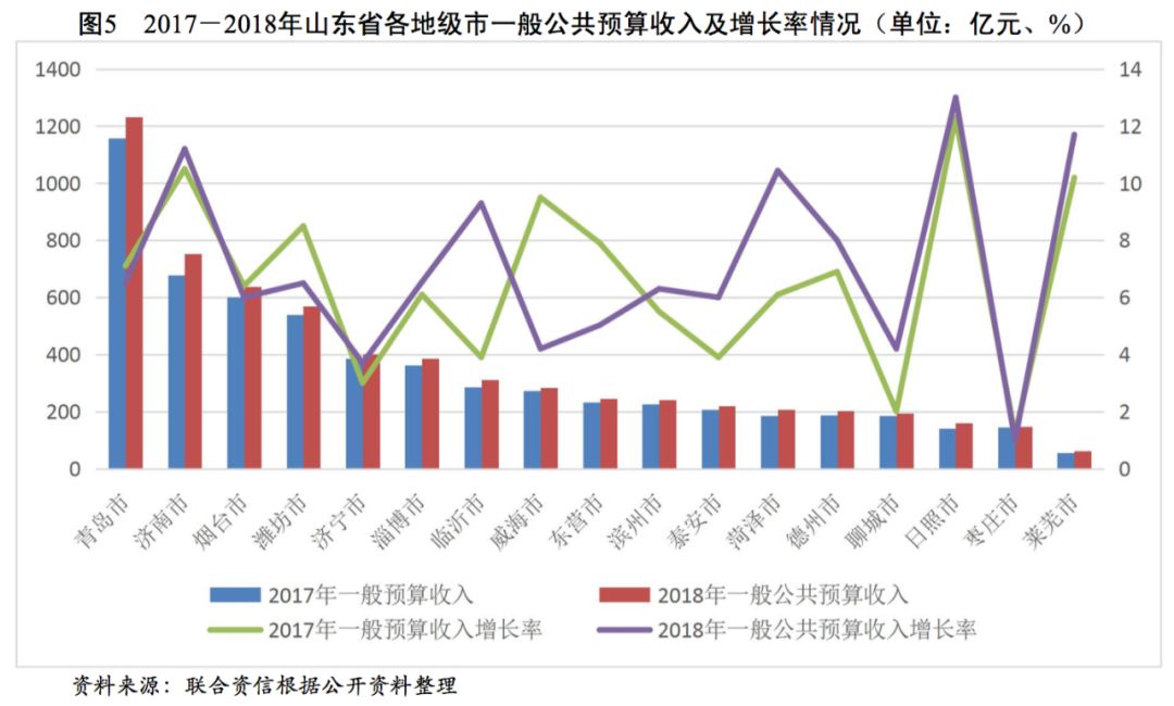山東省經(jīng)濟(jì)規(guī)模處于全國(guó)上游水平,2018年GDP排名全國(guó)第三,一般公共預(yù)算收入排名全國(guó)前列,政府債務(wù)率處于全國(guó)偏低水平,整體債務(wù)負(fù)擔(dān)輕。山東省各地級(jí)市經(jīng)濟(jì)實(shí)力和財(cái)政收入分化較重,東部沿海城市和省會(huì)濟(jì)南市的經(jīng)濟(jì)規(guī)模和財(cái)政實(shí)力明顯高于其他地級(jí)市。山東省各地級(jí)市一般公共預(yù)算收入質(zhì)量較好,部分地級(jí)市政府債務(wù)負(fù)擔(dān)較重。