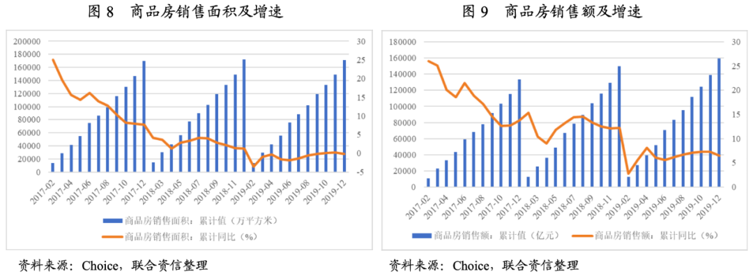 從市場表現(xiàn)看,2019年初房地產(chǎn)行業(yè)經(jīng)歷了小陽春,但下半年很快迎來拐點。從數(shù)據(jù)看,2019年,全國商品房銷售面積171.6萬億平方米,同比下降0.1%,銷售面積略有回落;商品房銷售額15.97萬億元,同比增長6.5%,雖然增速有所下滑,但全年銷售額仍保持增長。