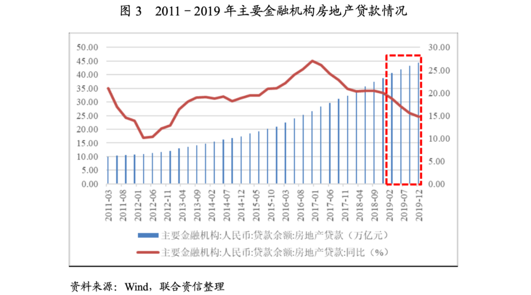 具體來看,銀行等金融機構(gòu)方面,2019年5月,銀保監(jiān)會發(fā)布了23號文《關(guān)于開展“鞏固治亂象成果促進合規(guī)建設(shè)”工作的通知》,明確要求商業(yè)銀行、信托、租賃等金融機構(gòu)不得向四證不全、開發(fā)商/股東資質(zhì)不達標、資本金未足額到位的房地產(chǎn)開發(fā)項目直接提供融資,或通過股權(quán)投資+股東借款、股權(quán)投資+債權(quán)認購劣后、應(yīng)收賬款、特定資產(chǎn)收益權(quán)等方式變相提供融資,由此開啟了2019年房地產(chǎn)融資調(diào)控;7月,央行“點名”房地產(chǎn)行業(yè)占用了較多的信貸資源,旨在引導(dǎo)銀行合理控制房地產(chǎn)貸款投放,并加強對高杠桿經(jīng)營的大型房企融資行為的監(jiān)管和風險提示。在相關(guān)政策的影響下,主要金融機構(gòu)對房地產(chǎn)的貸款雖保持增長,但增速逐漸放緩。