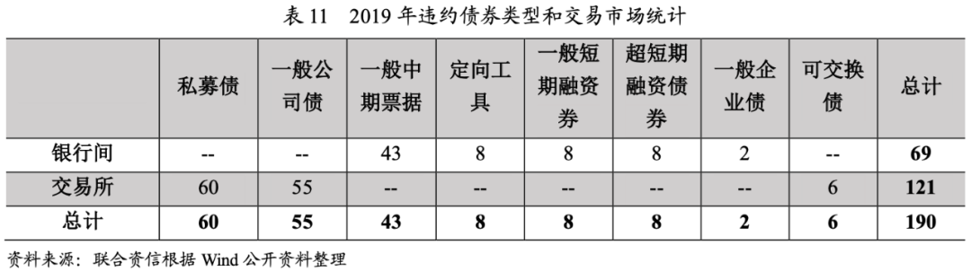 2019年,信用債到期規(guī)模高企,進入回售期的信用債規(guī)模同比大幅增長,疊加經(jīng)濟增速換擋及金融去杠桿帶來的信用收縮,弱資質(zhì)高杠桿企業(yè)償債壓力依然很大,債券市場延期2018年態(tài)勢,信用風險整體維持在較高水平,交易所和銀行間市場共計73個主體違約,涉及190只債券。
