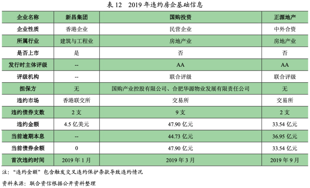 回顧2019年房地產(chǎn)行業(yè)債券違約事件,違約企業(yè)共三家,均為中小型企業(yè),具體信息如下: