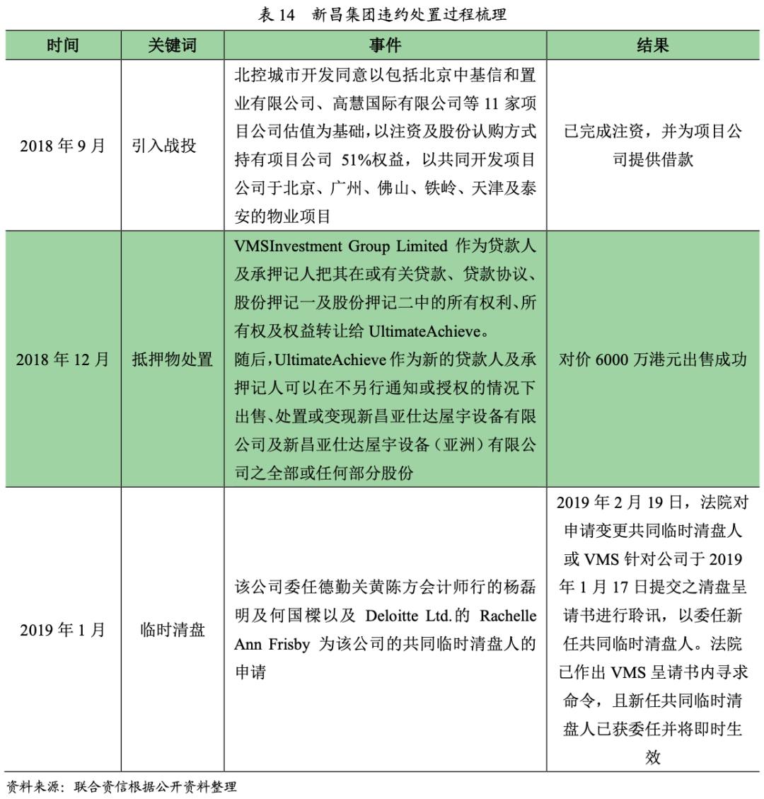 (2)違約處置方式二:出售資產(chǎn)——新昌集團