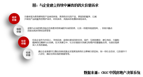 不過(guò)需要注意的是,結(jié)合顧客訴求角度來(lái)看,消費(fèi)者可謂“無(wú)利不起早”。因此企業(yè)雖然可以通過(guò)付出經(jīng)濟(jì)成本來(lái)吸引客戶參與活動(dòng),構(gòu)建社群,但是這種社群粘性較弱。而想要滿足客戶的信息、社交、社會(huì)價(jià)值,則對(duì)企業(yè)活動(dòng)策劃水平提出考驗(yàn),既要能夠引起消費(fèi)者興趣,還需要有一定的精神內(nèi)核,讓顧客信任并傳播。因此要真正構(gòu)建以企業(yè)為核心的“粉絲社群”對(duì)于房企而言,難度仍然較大。
