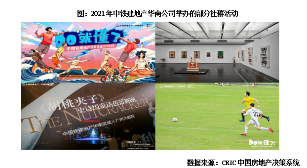 2021年中鐵建地產(chǎn)華南公司以家庭為原點(diǎn),以多維度,多聯(lián)結(jié),全覆蓋的社群內(nèi)容打造了多場(chǎng)社群活動(dòng),如舉辦業(yè)主足球賽、贊助《胡桃?jiàn)A子》芭蕾舞劇等。全年累計(jì)舉辦36場(chǎng)社群活動(dòng),吸引近800組新老客戶互動(dòng)參與,同時(shí)發(fā)布推文流量超1.3萬(wàn),有效擴(kuò)大華南公司社群影響力,提升業(yè)主粘性,吸引新老客戶互動(dòng)參與。