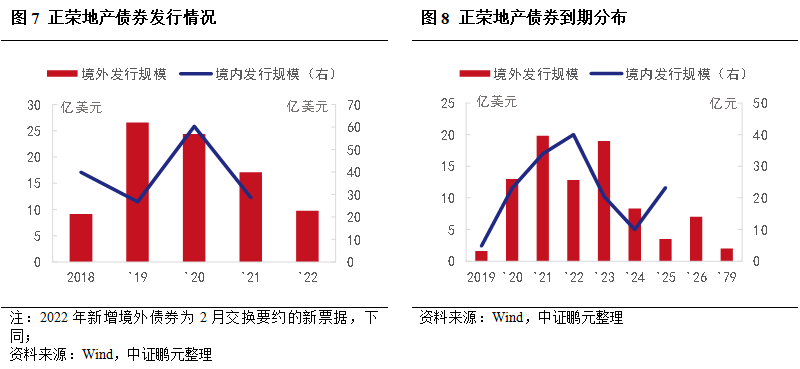 第三,評級調整。2022年2月15日,惠譽將將正榮地產的長期發(fā)行人違約評級從B+下調至B,2月21日,繼續(xù)下調至C。同日,穆迪將公司企業(yè)家族評級由B3下調至Caa2。對于上述交換要約和同意征求,惠譽認定為困境債務重組,3月30日將公司違約評級進一步下調至RD(限制性違約)。