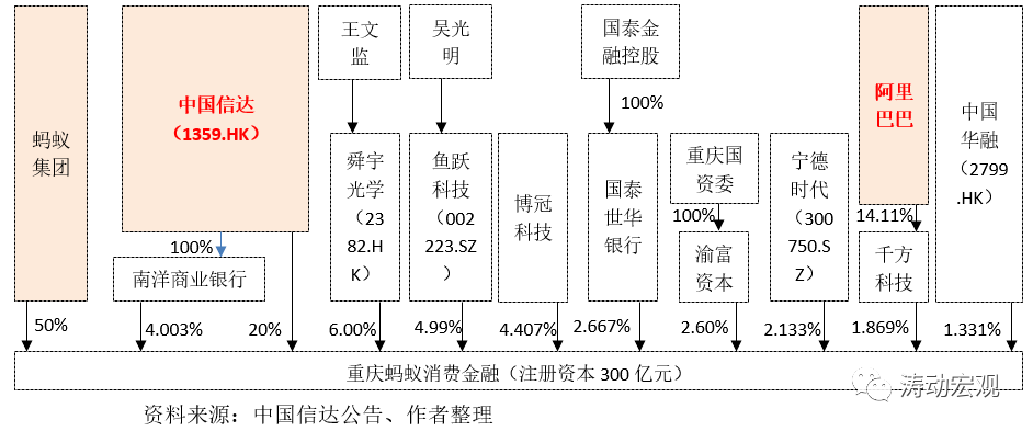 二、股權變局:螞蟻集團仍持股50%、信達由間接變成直接持股(二股東)