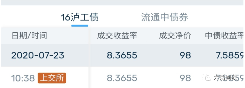 再來看個例子,16瀘工債(136343),發行人瀘州市工業投資集團有限公司,主體評級AA,債券評級AA;正是昨天提到的《國企金控平臺》,到期日245天,當前有成交價98,持有到期年化收益率8.3655%。