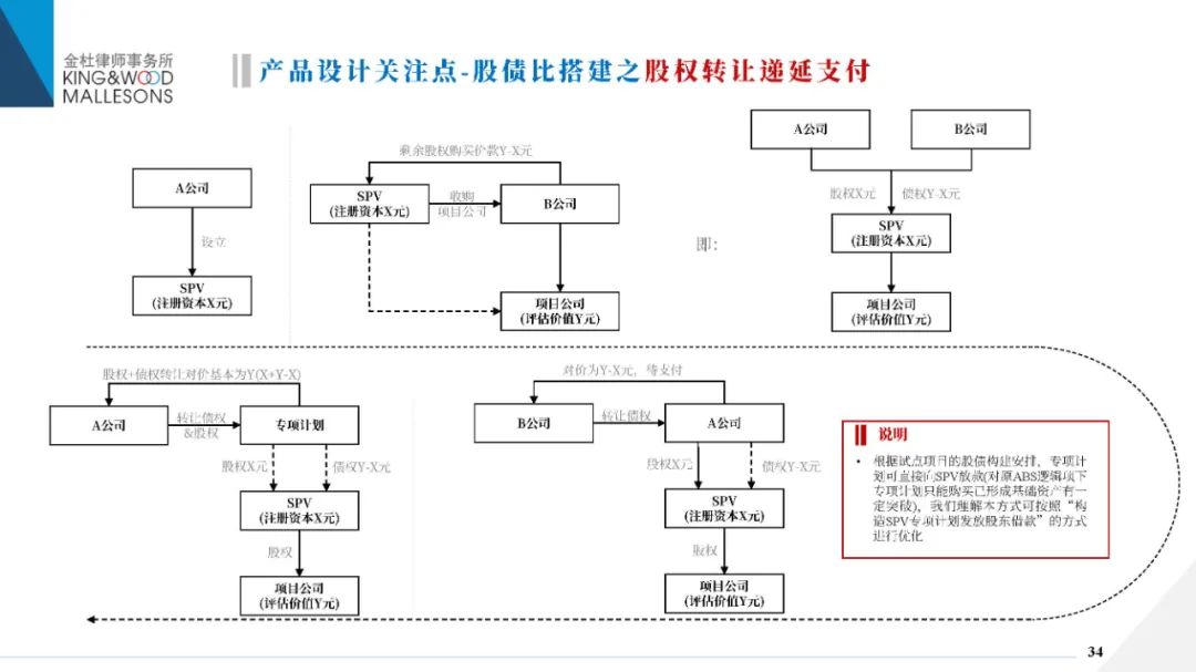 • 該模式無需單獨構造借款并進行放款,但假設設立SPV時,僅投入33.3%的實收資本/資本公積,將SPV的權益投資部分預先做小,然后通過遞延支付67.7%部分股權轉讓對價的方式確認債權,似乎也能達到構建股債比的效果,但在此情況下,仍需要通過新債的投入償還/購買這筆舊債,似乎并不達到簡便的效果;