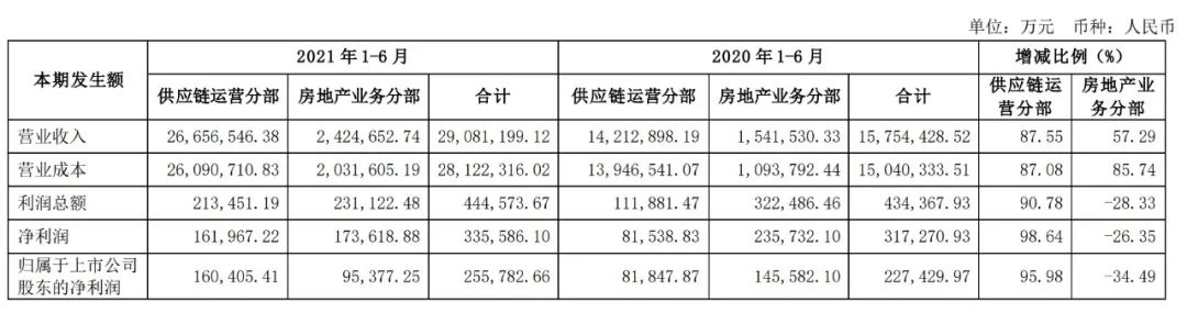 分業(yè)務(wù)來看,建發(fā)股份2021上半年的供應(yīng)量運(yùn)營分部營收2665.7億元,同比增速87.6%;房地產(chǎn)業(yè)務(wù)相對遜色,同期營收242.5億元,同比增速57.3%。
