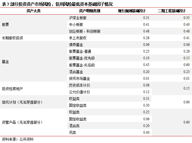 2、最低資本方面,償二代二期工程強(qiáng)調(diào)對(duì)投資資產(chǎn)實(shí)行“穿透式”監(jiān)管,上調(diào)對(duì)未上市公司的股權(quán)投資、投資性房地產(chǎn)、無(wú)法穿透的信托計(jì)劃及資管產(chǎn)品等基礎(chǔ)因子,提高最低資本要求;新增集中度風(fēng)險(xiǎn)最低資本要求,防止風(fēng)險(xiǎn)敞口過(guò)于集中。