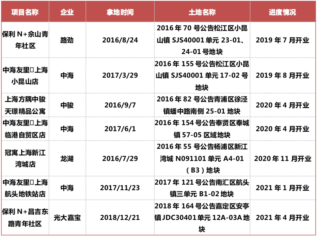 2021年上海純租賃用地項目預計入市近15個,目前已有2家開業,同時,多個自持租賃項目也已投入運營。