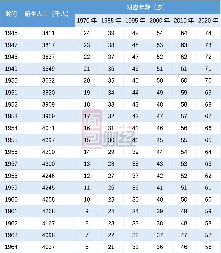 雖然新建住房銷售數量在1972年以后開始下滑,但是隨后很快再次進入增長期,這主要是因為美國二戰后的“嬰兒潮”一代開始陸續進入購房階段,下表為美國“嬰兒潮”的統計數據:
