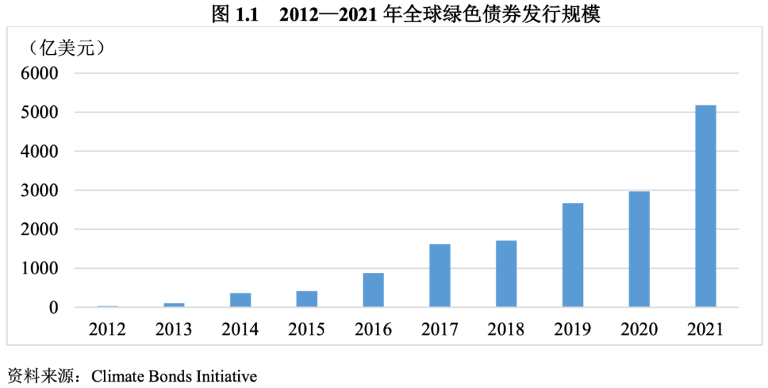 2021年,國際綠色債券發行量延續了2013年以來的增長趨勢。根據氣候債券倡議組織(CBI)的統計,全球綠色債券發行規模達到5174億美元,較上年(2970億美元)大幅增長74.21%,發行規模創歷史新高。