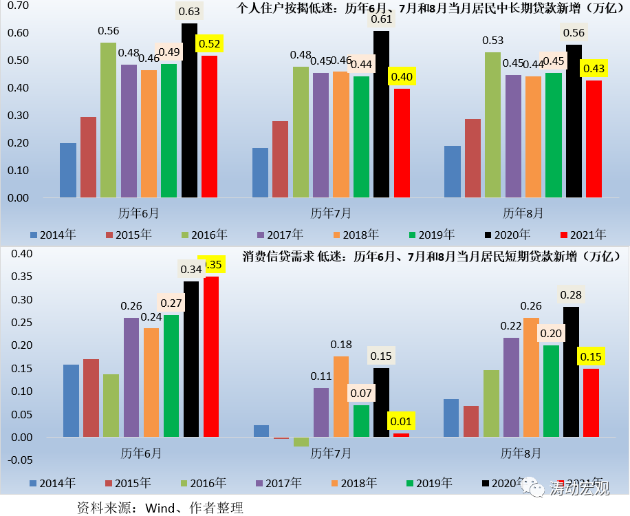 3、今年8月居民短期貸款新增0.15萬億,同比少增0.13萬億,創(chuàng)2016年以來歷年8月當月新增規(guī)模新低。同時今年7月當月居民短期貸款新增0.01萬億,同樣創(chuàng)2017年以來新低。這表明當前消費信貸需求相對還比較低迷。