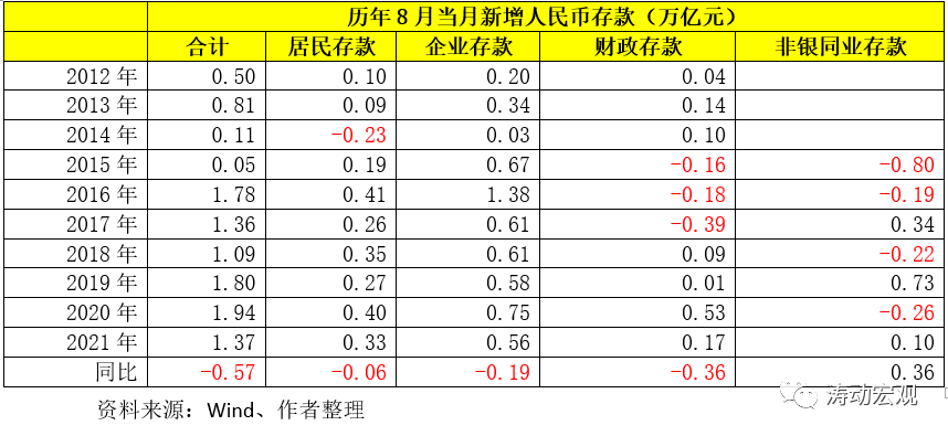 2、受房地產(chǎn)管控力度持續(xù)加強影響,以個人按揭貸款為主的居民中長期貸款依然偏弱。今年8月居民中長期貸款新增0.43萬億,創(chuàng)2016年以來歷年8月新低,同比少增0.13萬億。我們看到,今年7月和8月的當月新居民中長期貸款均創(chuàng)2016年以來新低,表明房地產(chǎn)政策在7-8月的影響有強化態(tài)勢。