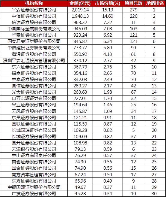 三、證監會主管ABS承銷排名