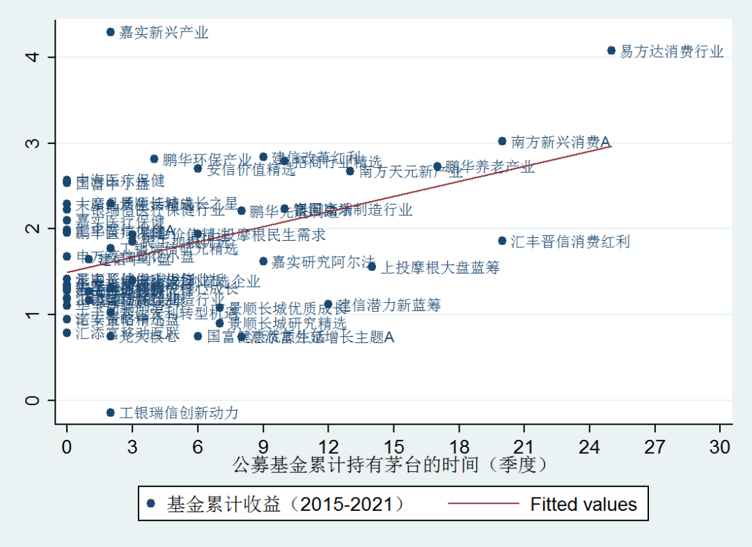 圖1 股票基金持有茅臺的時間與基金業(yè)績