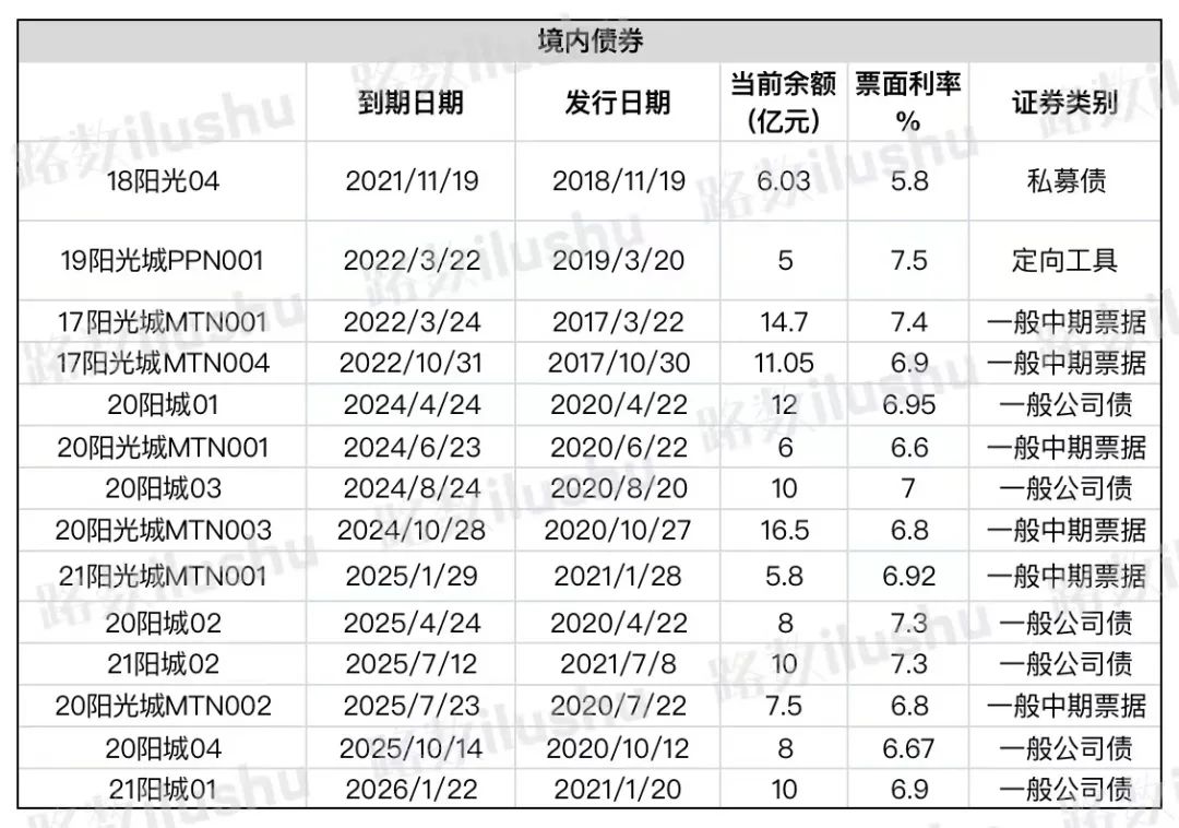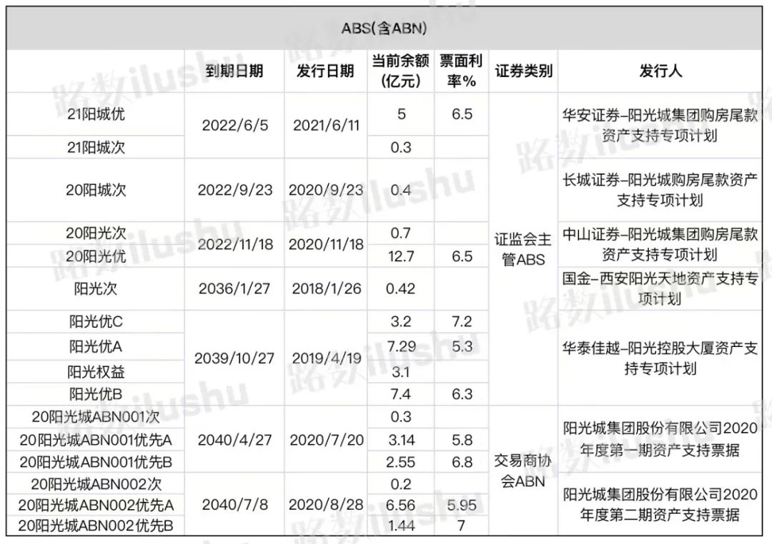 其中有:一只由“中山證券-陽光城集團(tuán)購房尾款資產(chǎn)支持專項計劃”發(fā)起的ABS產(chǎn)品“20陽光優(yōu)”,回售到期。一筆為美元債“陽光城10% N20230212“,也是回售到期。另外還有一筆境內(nèi)債“18陽光04”和一筆供應(yīng)鏈。
