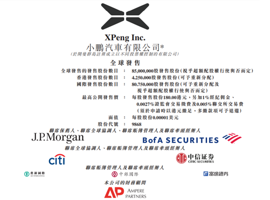 7月6日,小鵬汽車公布IPO結(jié)果,共發(fā)行8500萬股。其中,香港公開發(fā)售425萬股A類普通股,國際發(fā)售8075萬股A類普通股,以165港元發(fā)行價(jià)計(jì)算,募資規(guī)模約140億港元。