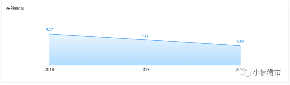 除此之外,建業(yè)地產的毛利率和凈利率也連年下滑,其毛利潤率從2019年的26%下降至19.9%,凈利率由7.85%下降至6.04%。