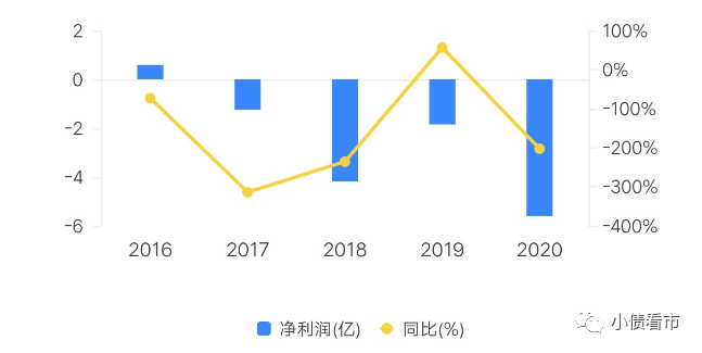 2017年至2020年,金世旗控股實現(xiàn)歸母凈利潤分別為-1.25億、-4.19億、-1.85億以及-5.61億元,業(yè)績虧損額逐步放大。