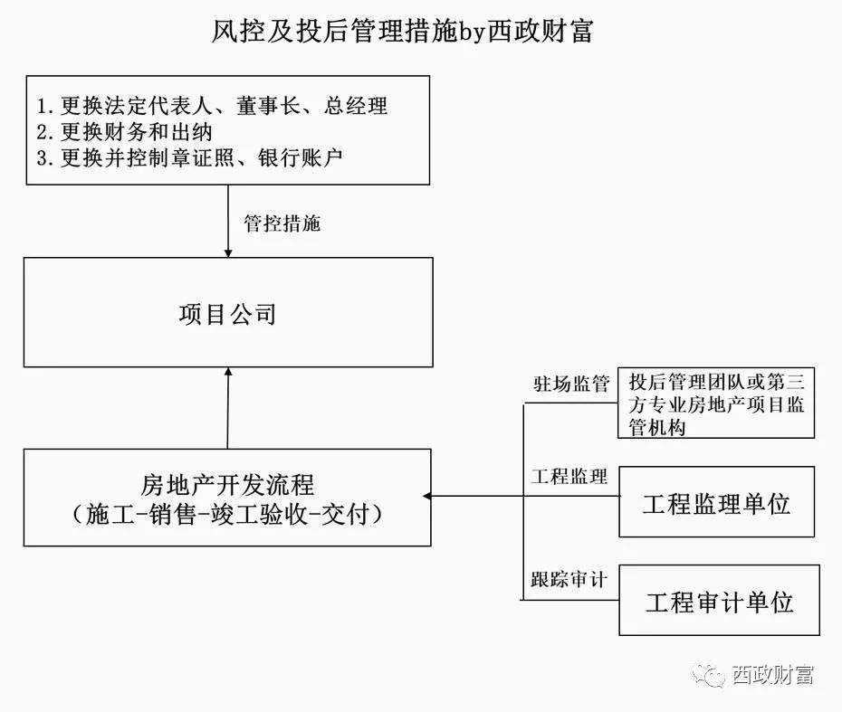 (2)投后管理團隊入駐或引入第三方監管:為保證項目正常開發、防止資金挪用等,由超級優先權投資主體聘請第三方專業的房地產項目監管機構實施項目現場監管,包括:監管章證照、賬戶和資金支出和收入監管、成本合約監管、現場工程進度和工程款支付監管、銷售情況和銷售回款監管等。