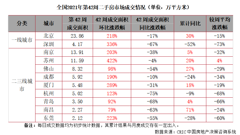原標題: 二手房周報 | 房貸預期向好下11城二手成交環比倍增,但同比仍跌43%(10.11-10.17)
