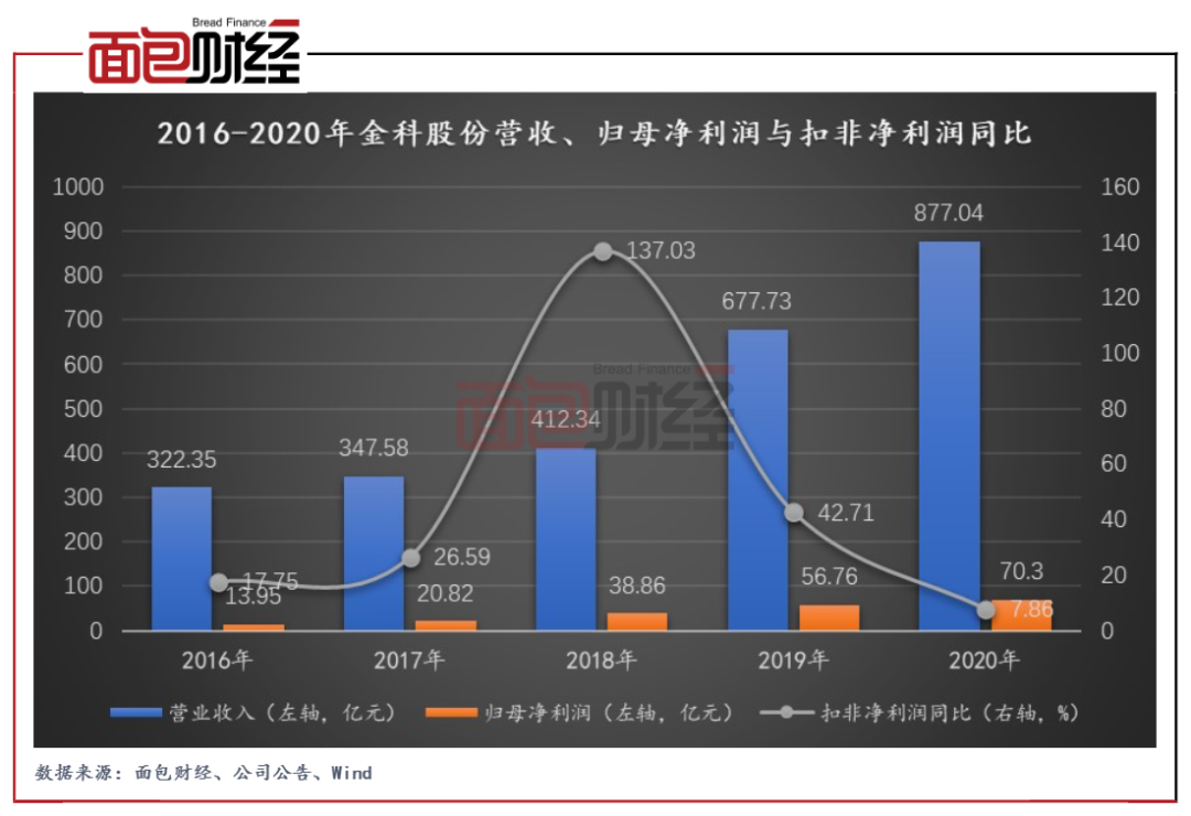 據金科股份2020年年報,報告期內公司實現營收、歸母凈利潤分別為877.04億元和70.3億元,均保持兩位數增長。據披露,公司當年來自聯營、合營公司的權益利潤從2019年的1.84億元提升到了13.03億元。