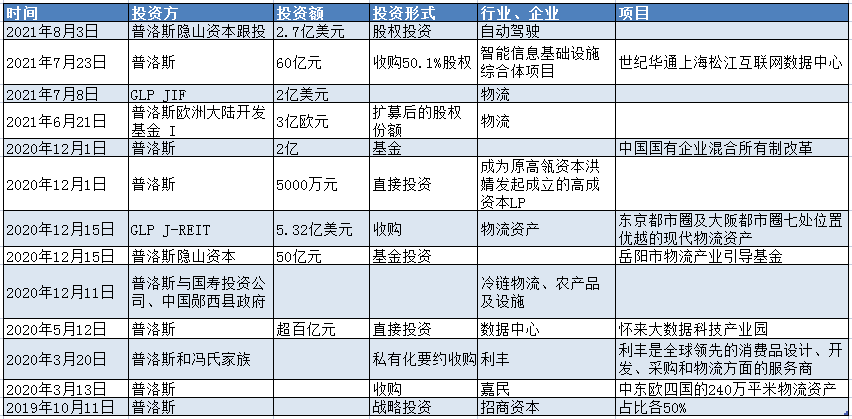 普洛斯近兩年投資事件不完全統(tǒng)計(jì)