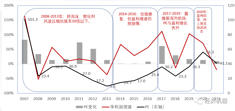 3)2017-2019年:提價(jià)成功,盈利兌現(xiàn),帶動了戴維斯雙升。期間,股價(jià)上漲270%,但由于盈利高增長,PE估值從25倍上升到36倍;