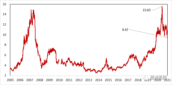年初至今,核心資產(chǎn)確實(shí)進(jìn)行了一波深度調(diào)整,部分個股調(diào)整較為充分。作為整體,PB估值從15.6倍,降至9.5倍,仍然偏高(圖x),降幅明顯,但絕對水平仍然不低。作為一個整體,核心資產(chǎn)調(diào)整仍不夠充分,仍存在均值回歸空間。